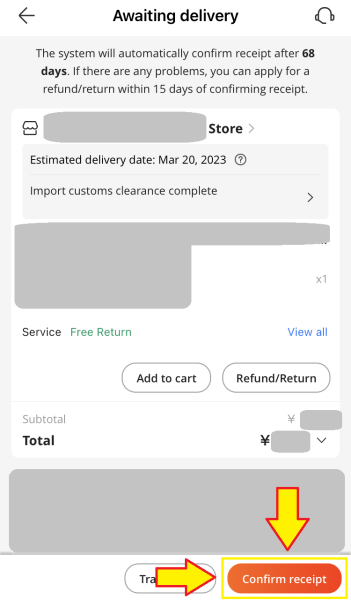 5. After receiving your item in the mail, press the "confirm receipt" button inside AliExpress to begin the verification period.